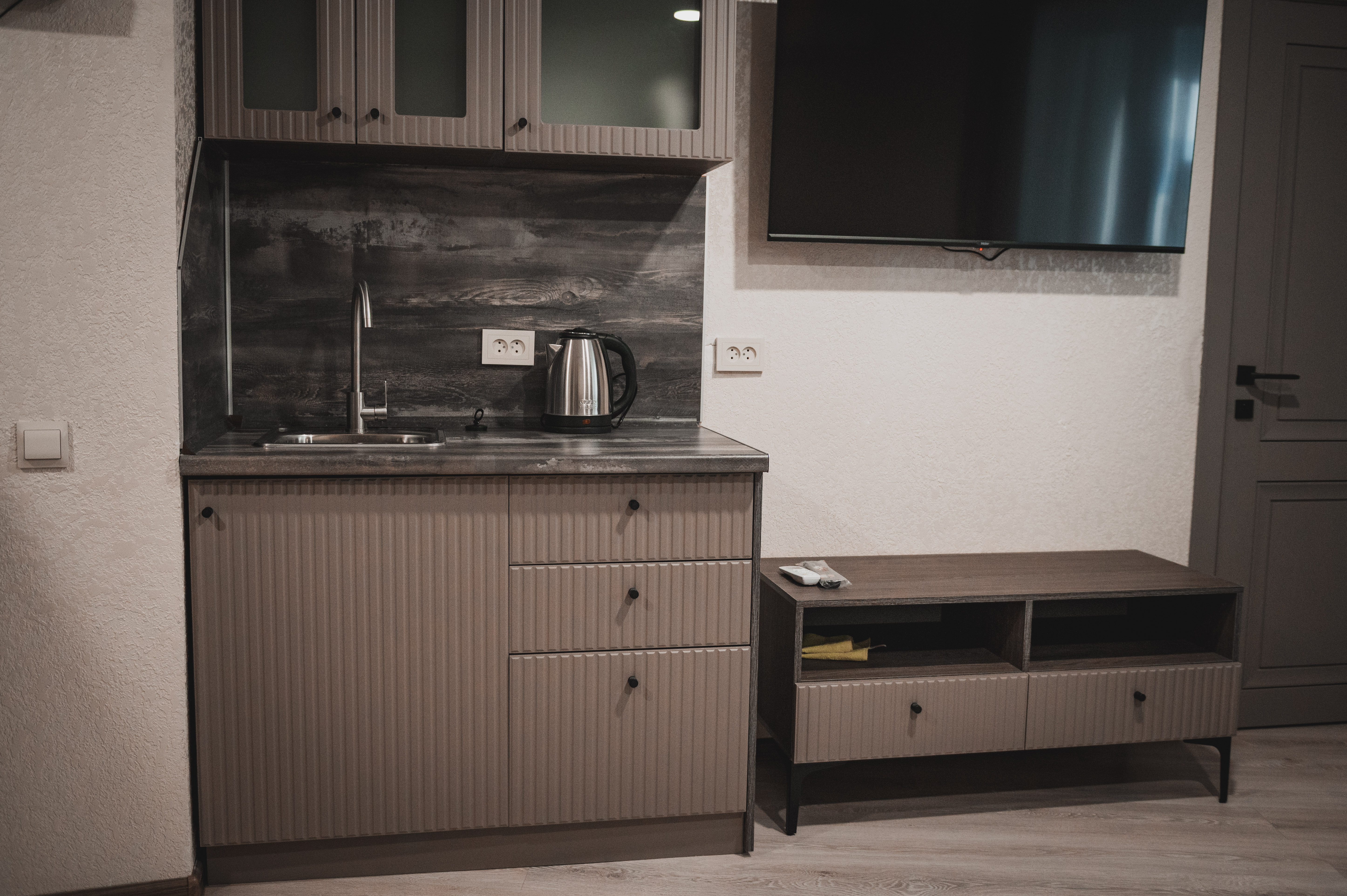Мини-кухня с кухонными принадлежностями